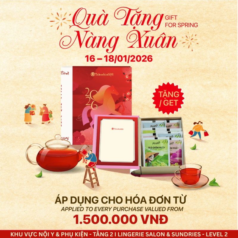 Tặng 01 hộp trà Mori cho hóa đơn mua hàng từ 1.500.000 VNĐ tại Khu vực nội y & phụ kiện – Tầng 2, TTTM Takashimaya.